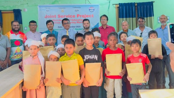 লামায় এপেক্স ক্লাবের উদ্যোগে শিক্ষা সামগ্রী ও সেলাই মেশিন বিতরণ