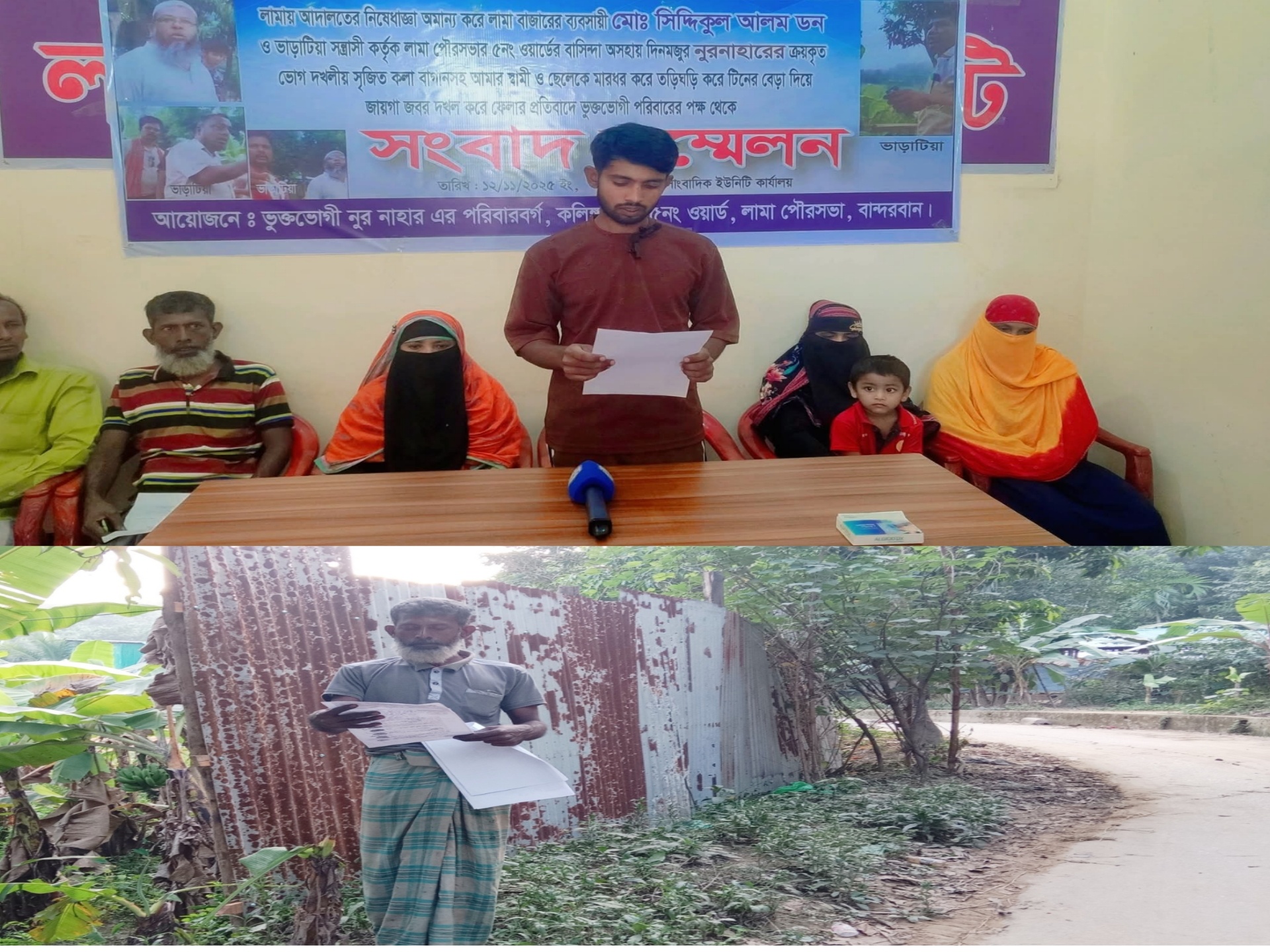 লামায় অসহায় নারীর ভোগদখলীয় জমি জোরপূর্বক জবর দখল করার প্রতিবাদে সংবাদ সম্মেলন করেছে নুর নাহার