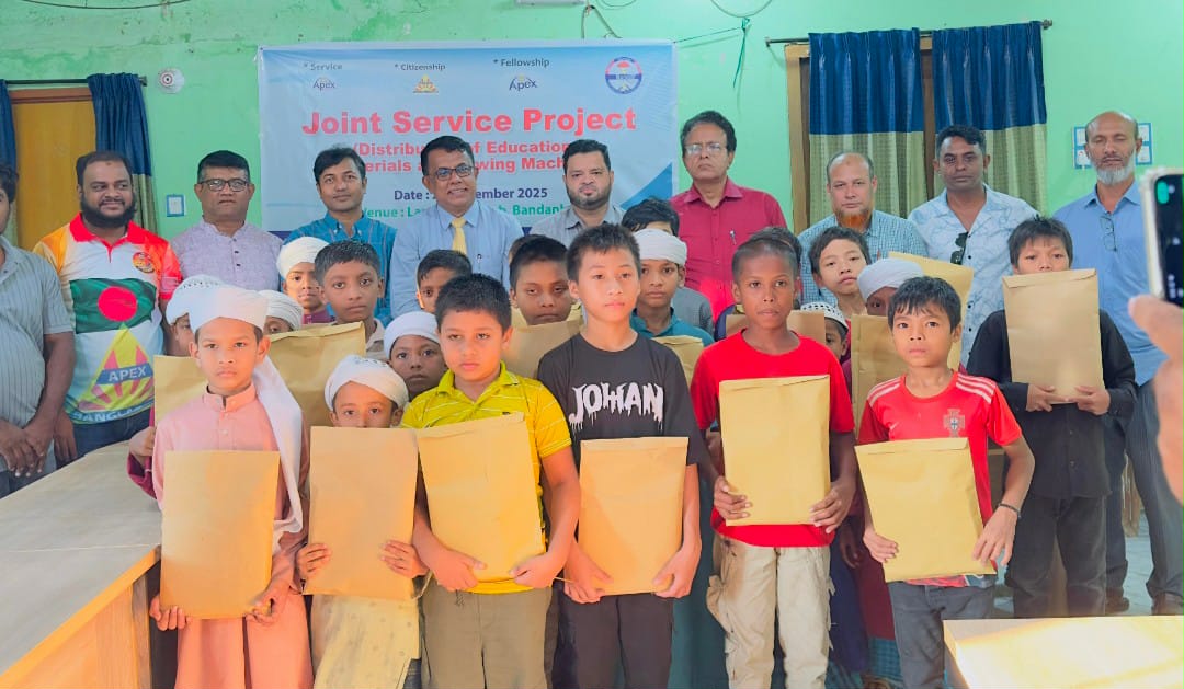 বান্দরবানের লামায় ক্ষুদ্র নৃ- গোষ্ঠী ও লামা আলীয়া এতিম খানার শিক্ষার্থীদের পড়াশোনায় আগ্রহ বৃদ্ধি করতে শিক্ষা সামগ্রী, বাইসাইকেল ও জীবনমান উন্নয়নে নারীদের স্বাবলম্বী করে তুলতে সেলাই মেশিন বিতরণ করেছে এপেক্স ক্লাব অব বান্দরবান ও এপেক্স ক্লাব অব লামা।